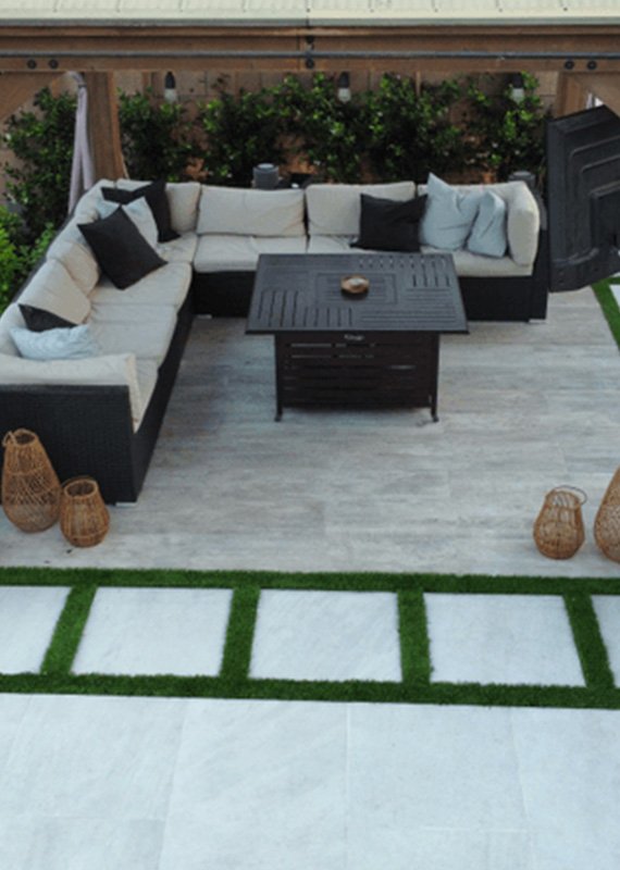 Our team helps design patios, walkways, terraces, gardens, and outdoor living spaces with porcelain pavers that can mimic natural stone, wood, or concrete.